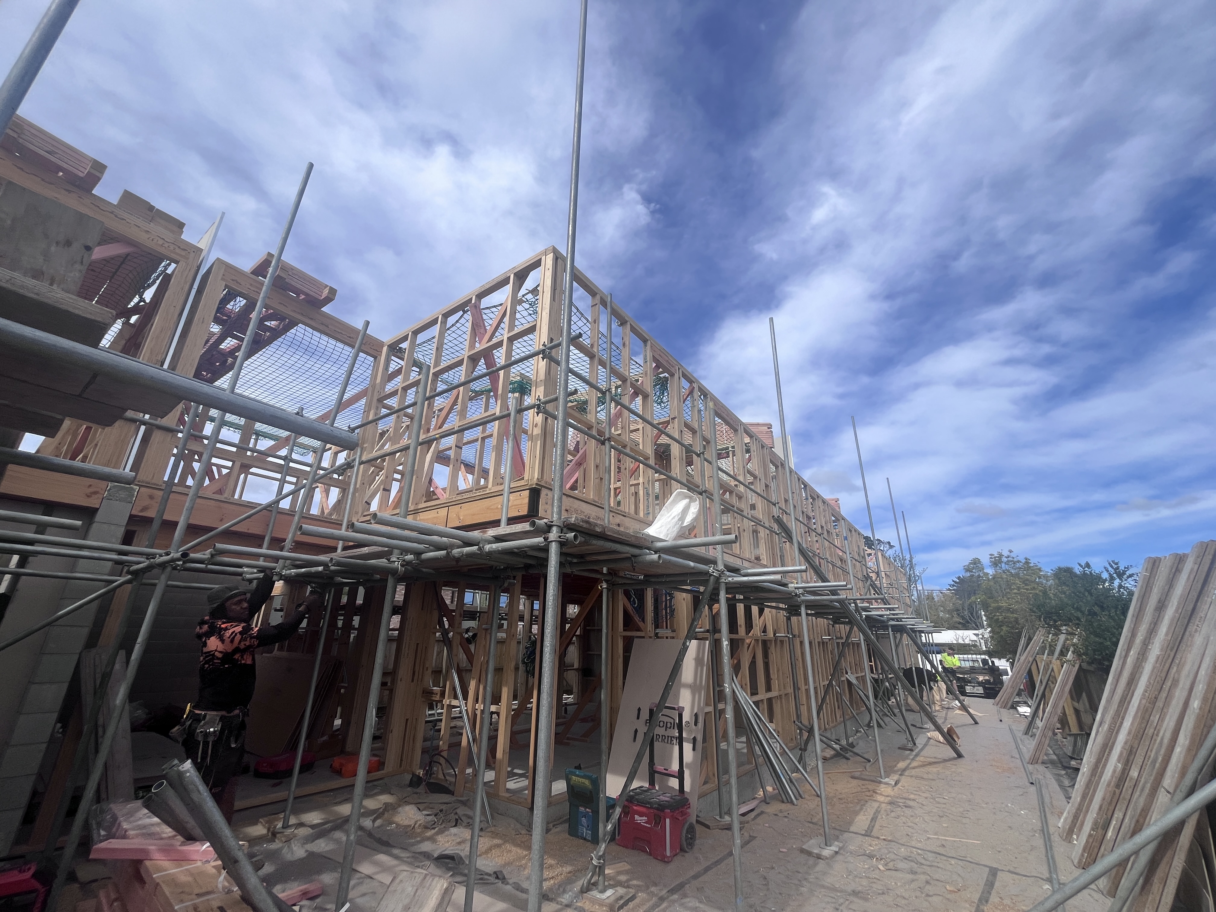 Work on the property is progressing well. The lower and upper frames are now complete, with the middle floors in place. The team has also been on site to measure up for windows, keeping everything moving in sequence.