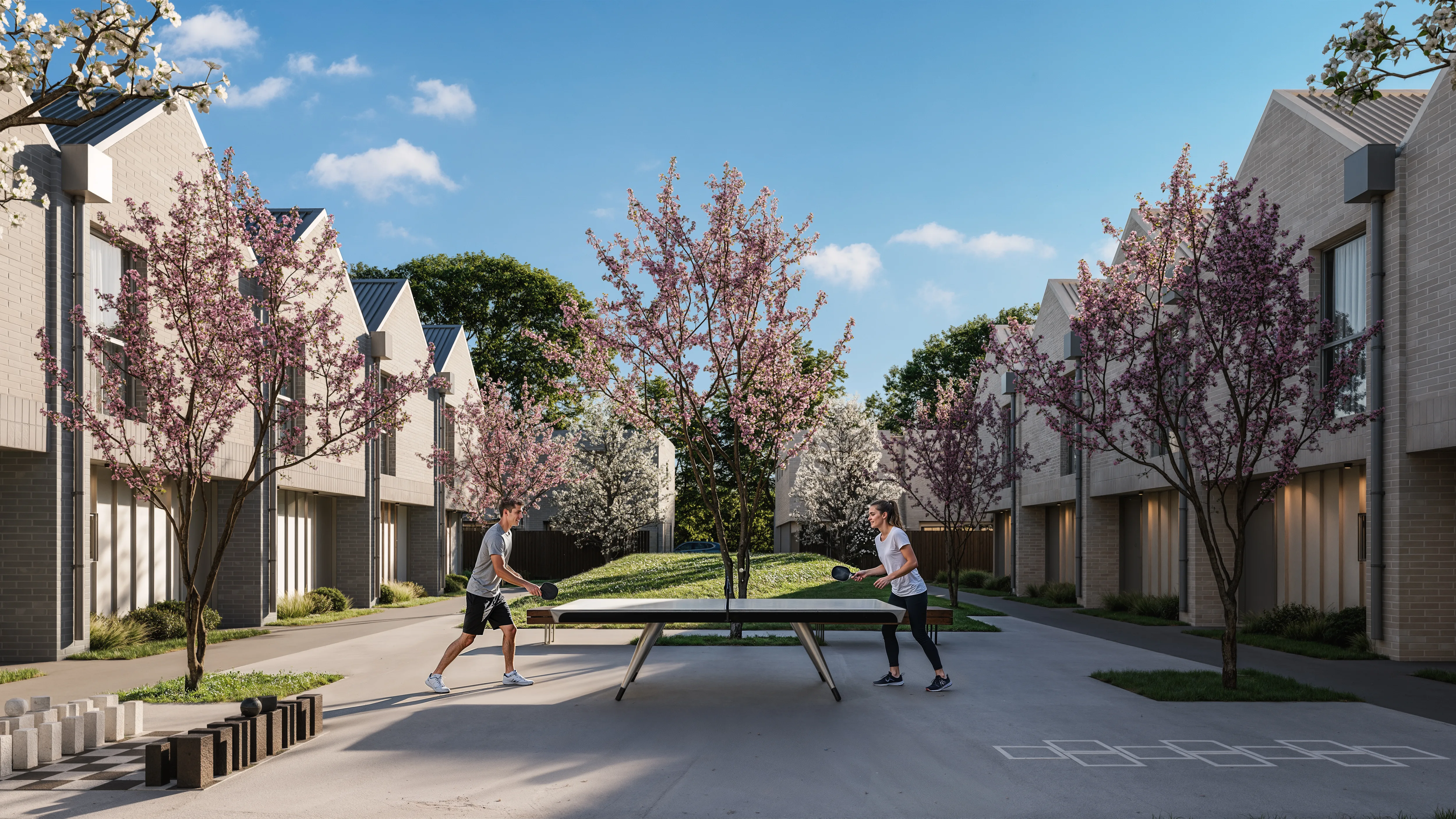 Lifestyle extends beyond your front door. Residents enjoy secure parking with EV charging, landscaped communal spaces with seating, outdoor table tennis, and play areas for families. An onsite café will create a welcoming neighbourhood hub – the perfect place to start your day with a coffee or connect with friends and neighbours.