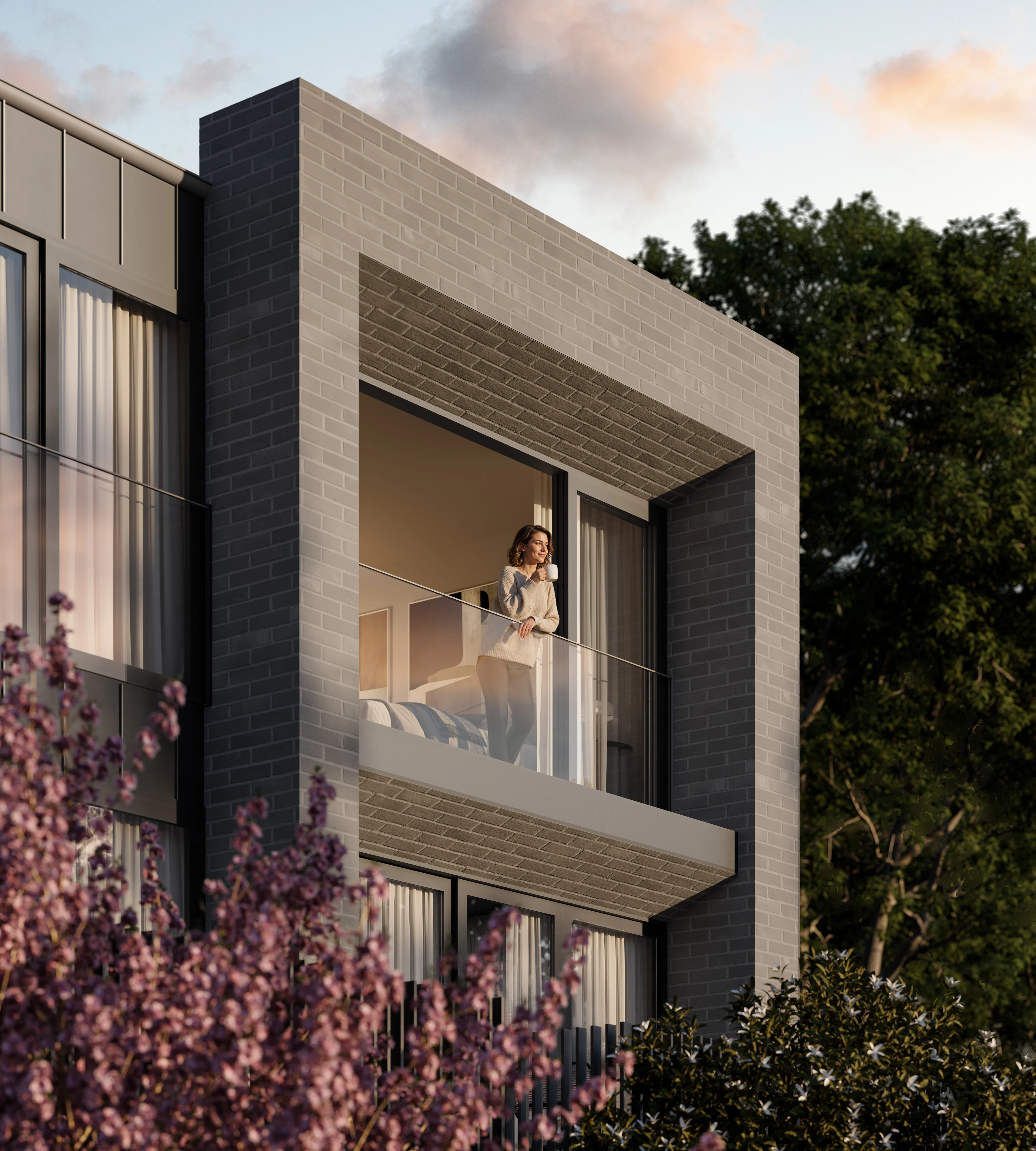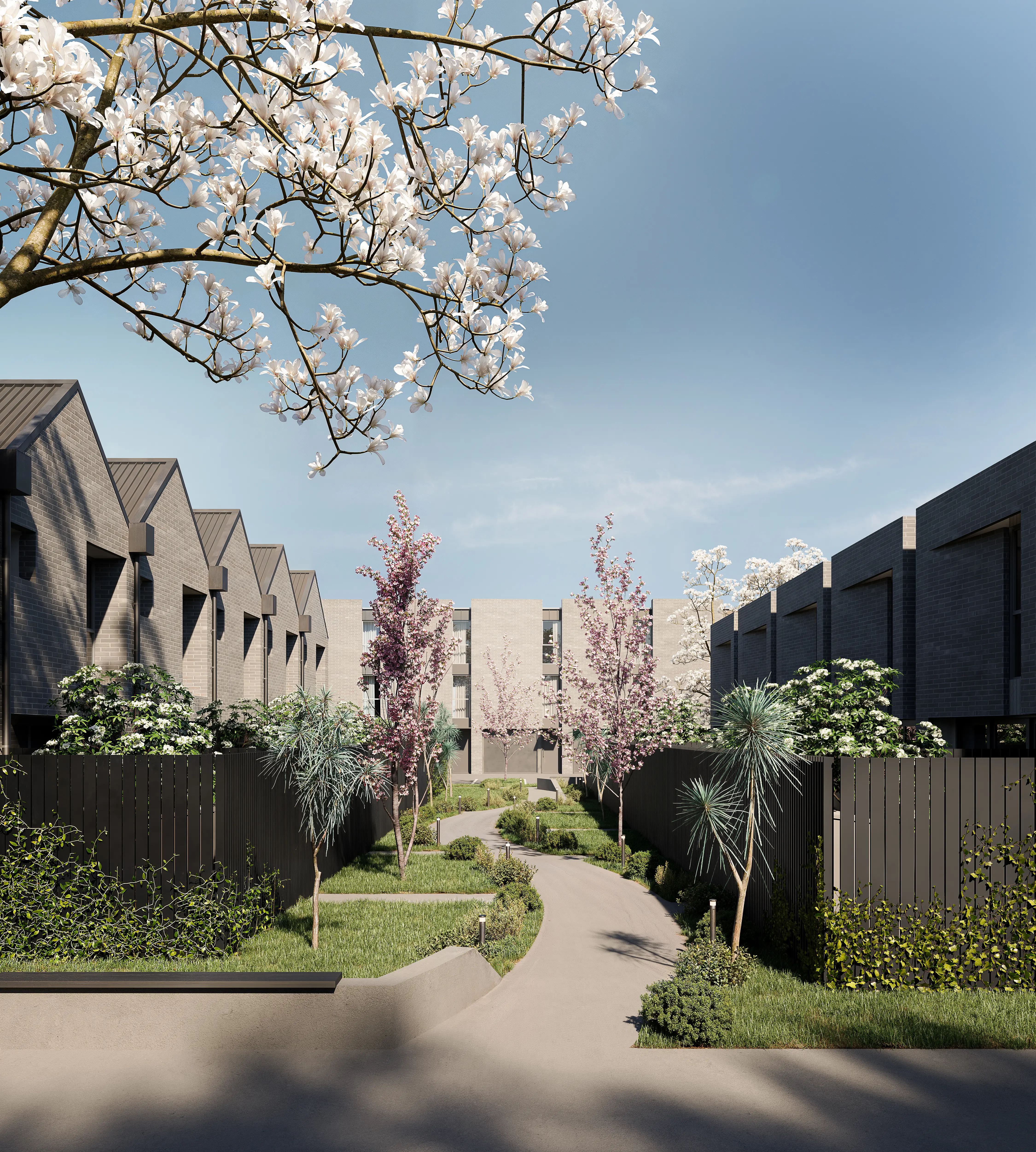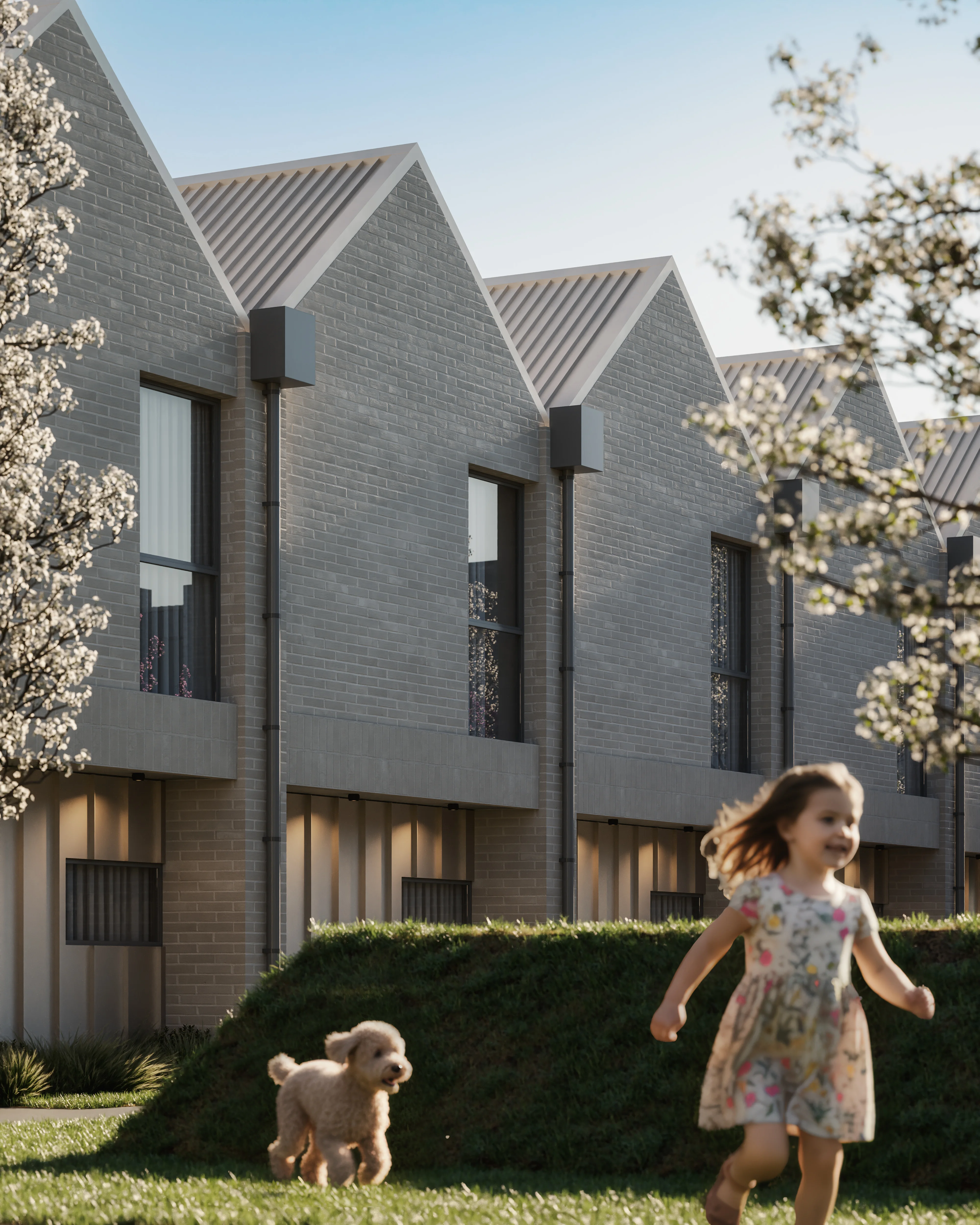 Buyers can choose from a diverse range of floorplans – from innovative dual-key one and two-bedroom townhouses offering flexibility and income potential, to high-end park-facing apartments, contemporary two-bedroom homes, and spacious three-bedroom residences complete with garaging. Every home is complemented by a private courtyard or balcony designed to maximise natural light and create seamless indoor-outdoor flow.